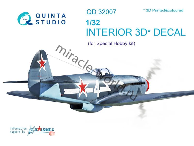 Quinta QD32007 3D Декаль интерьера кабины Як-3 (для модели Special Hobby) 1/32