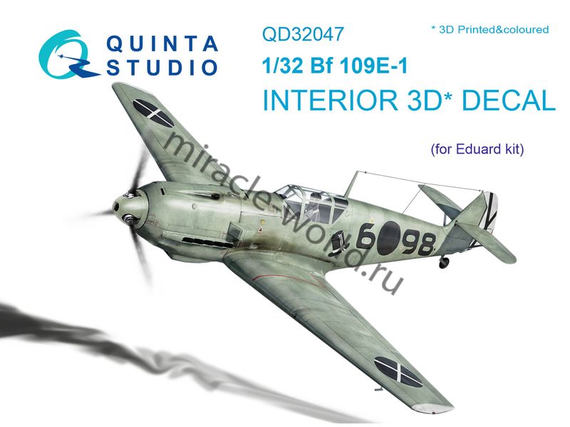 Quinta QD32047 3D Декаль интерьера кабины Bf-109E-1 (для модели Eduard) 1/32