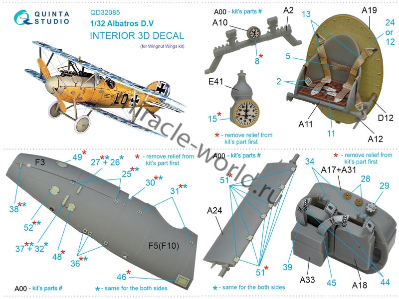 Quinta QD32085 3D Декаль интерьера кабины Albatros D.V (для модели Wingnut Wings) 1/32