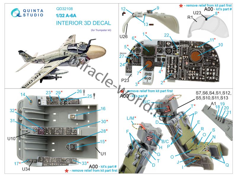 Quinta QD32108 3D Декаль интерьера кабины A-6A "Intruder" (для модели Trumpeter) 1/32