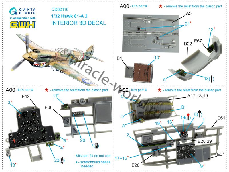 Quinta QD32116 3D Декаль интерьера кабины Hawk 81-A2 (для модели GWH) 1/32