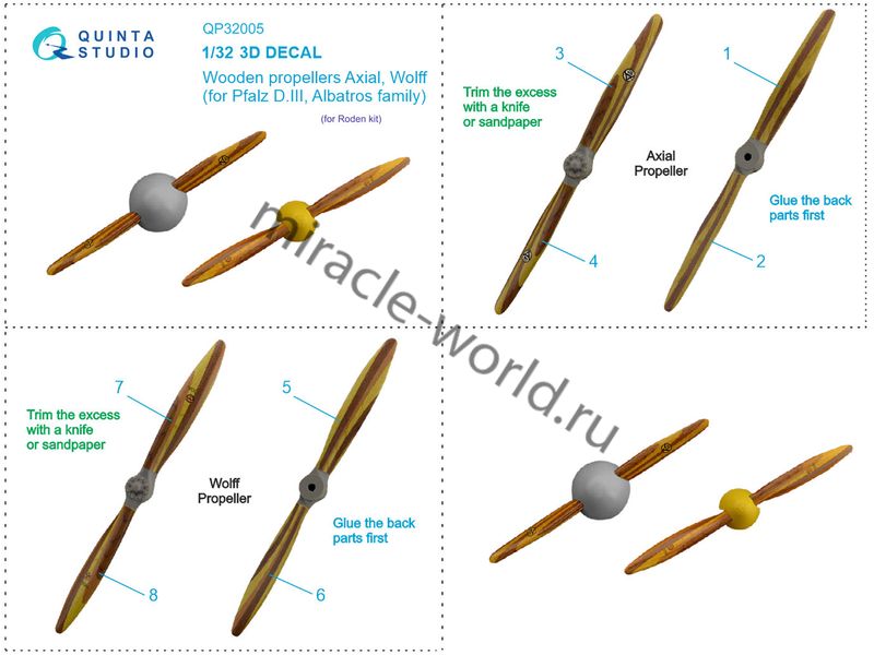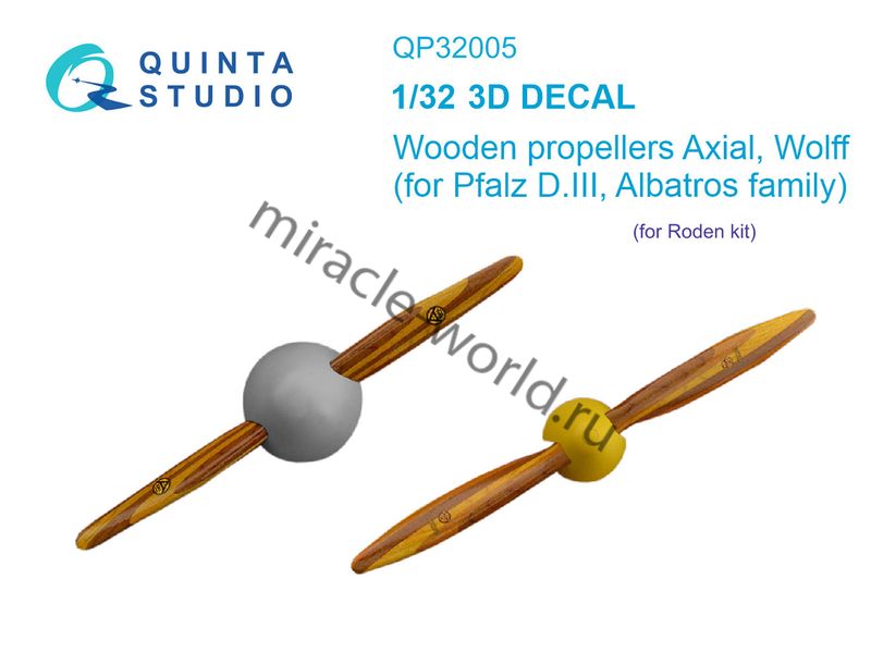 Quinta QP32005 3D Декаль: деревянные воздушные винты Axial Wolff (для модели Roden) 1шт. 1/32
