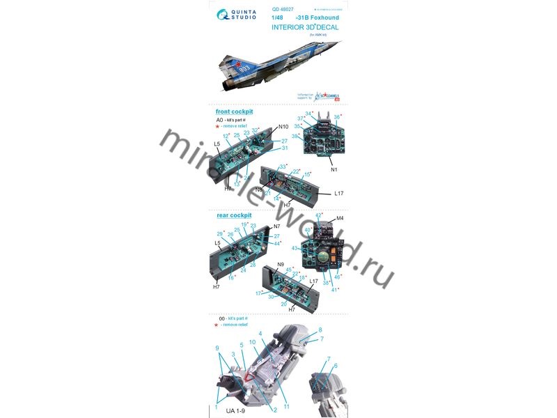 Quinta QD48027 3D Декаль интерьера кабины Самолет (М) тип 31Б (для модели AMK) 1/48