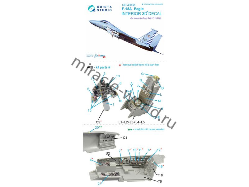 Quinta QD48038 3D Декаль интерьера кабины F-15A "Eagle" (для модели GWH) 1/48