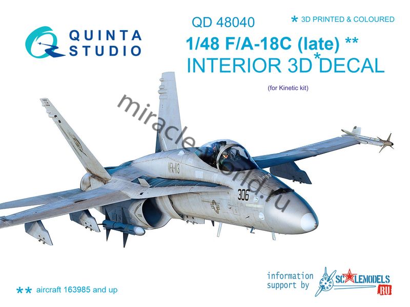 Quinta QD48040 3D Декаль интерьера кабины F/A-18С / F-18C "Hornet" (late, для модели Kinetic) 1/48