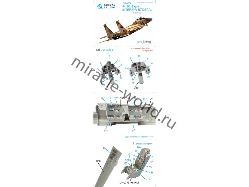 Quinta QD48041 3D Декаль интерьера кабины F-15D "Eagle" (для модели GWH) 1/48