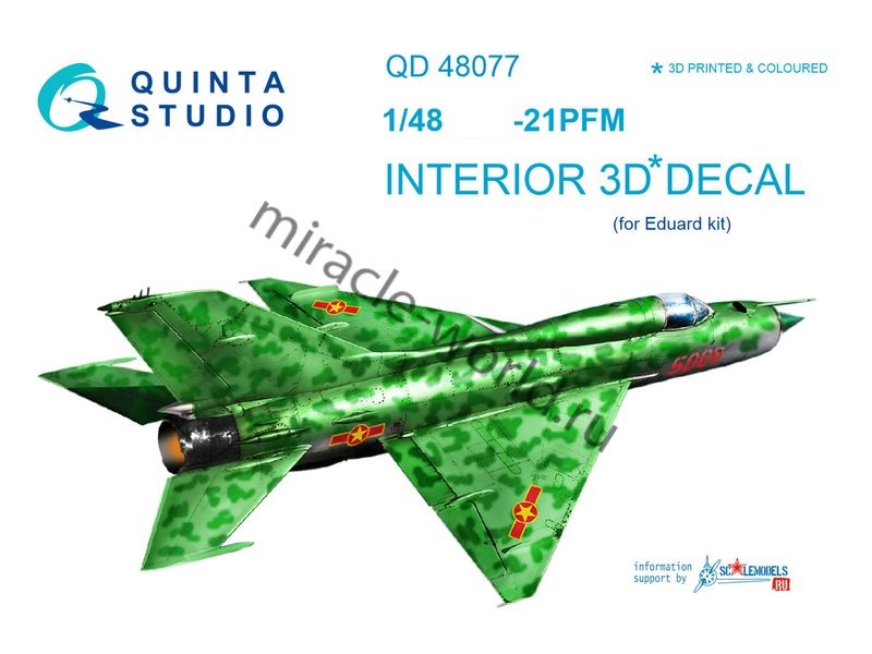 Quinta QD48077 3D Декаль интерьера кабины МиГ-21ПФМ (изумрудные панели, для Eduard) 1/48