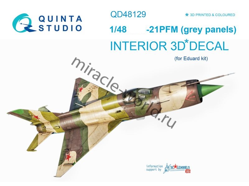 Quinta QD48129 3D Декаль интерьера кабины МиГ-21ПФМ (серые панели, для Eduard) 1/48