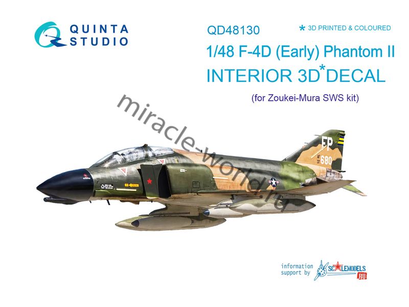 Quinta QD48130 3D Декаль интерьера кабины F-4D "Phantom II" (ранний, для модели ZM SWS) 1/48