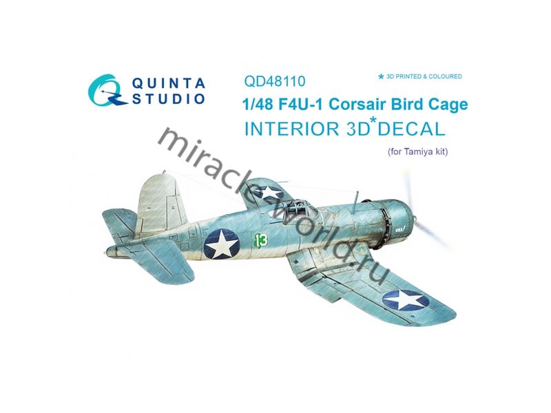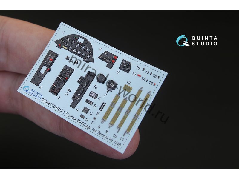 Quinta QD48110 3D Декаль интерьера кабины F4U-1 "Corsair" (Bird Cage, для модели Tamiya) 1/48
