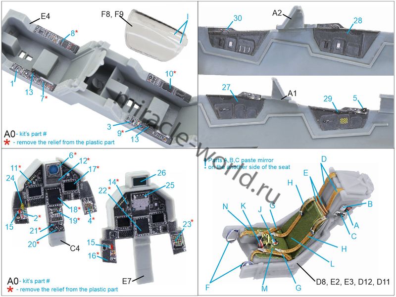 Quinta QD48118 3D Декаль интерьера кабины Mirage 2000-5B (для модели Kinetic) 1/48