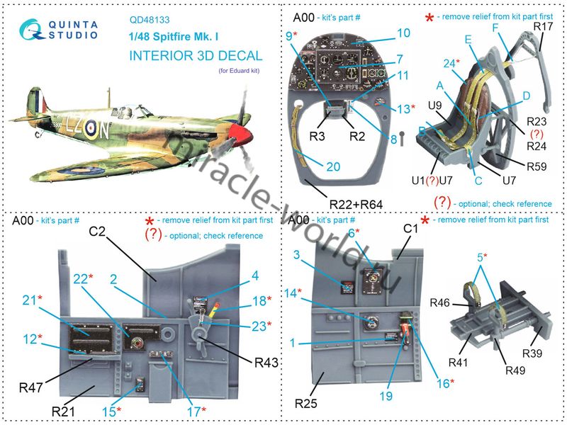 Quinta QD48133 3D Декаль интерьера кабины Spitfire Mk.I (для модели Eduard) 1/48