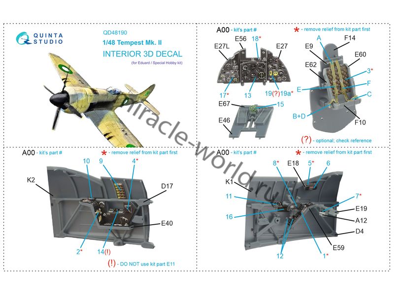 Quinta QD48190 3D Декаль интерьера кабины Tempest Mk.II (для модели Eduard) 1/48