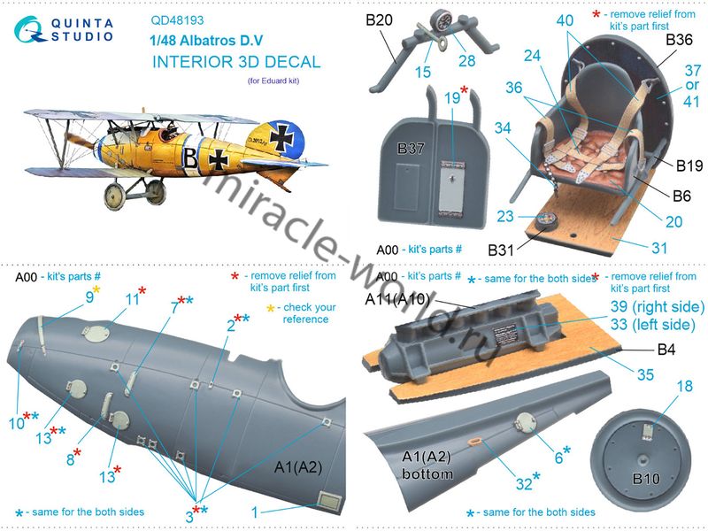 Quinta QD48193 3D Декаль интерьера кабины Albatros D.V (для модели Eduard) 1/48