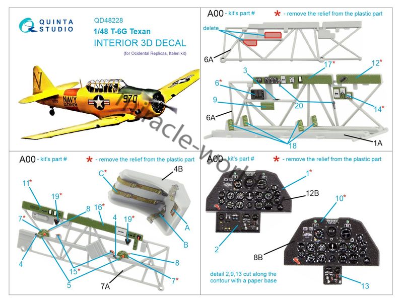 Quinta QD48228 3D Декаль интерьера кабины T-6G "Texan" (для модели Italeri) 1/48