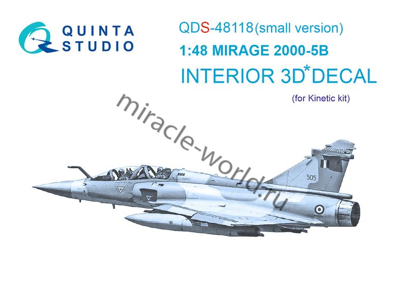 Quinta QD48118S 3D Декаль интерьера кабины Mirage 2000-5B (для модели Kinetic, small version) 1/48