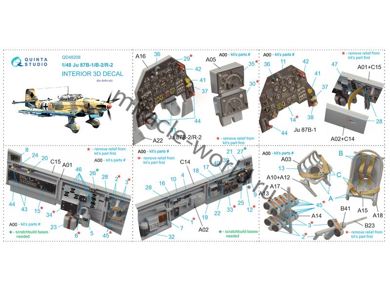Quinta QD48208 3D Декаль интерьера кабины Ju-87B-1 / Ju-87B-2 / Ju-87R-2 / (для модели Airfixi) 1/48
