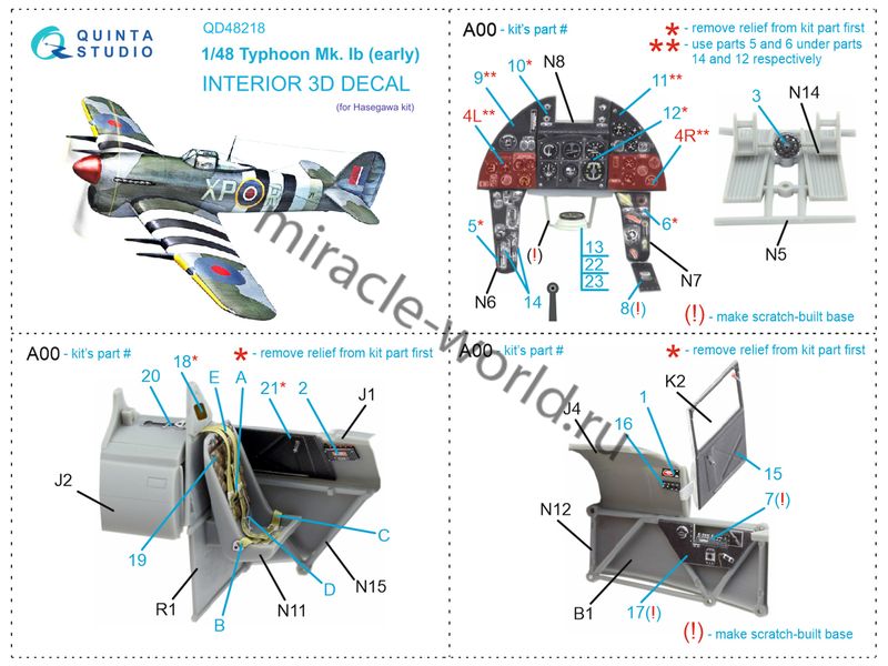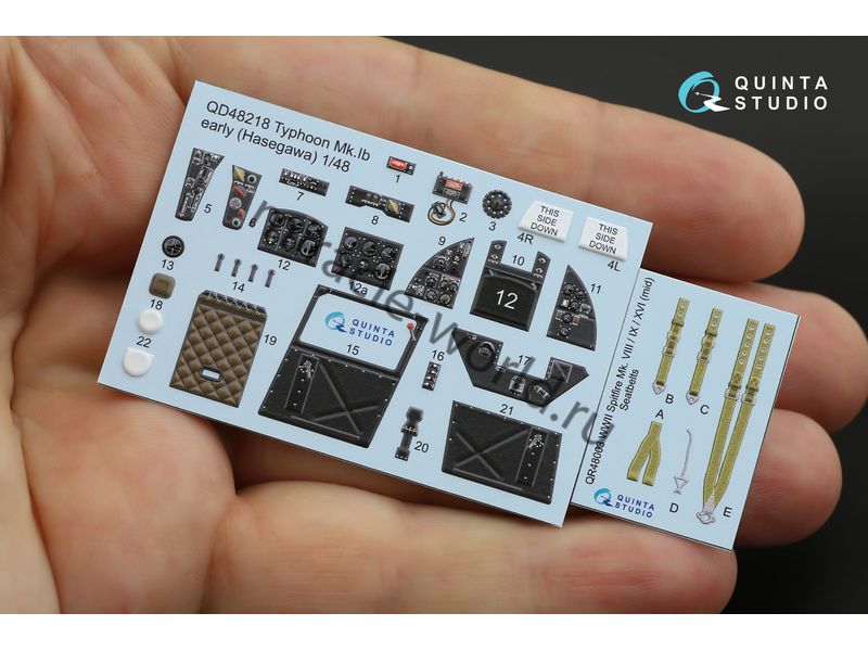 Quinta QD48218 3D Декаль интерьера кабины Hawker Typhoon Mk.1b (early, для модели Hasegawa) 1/48