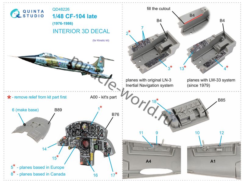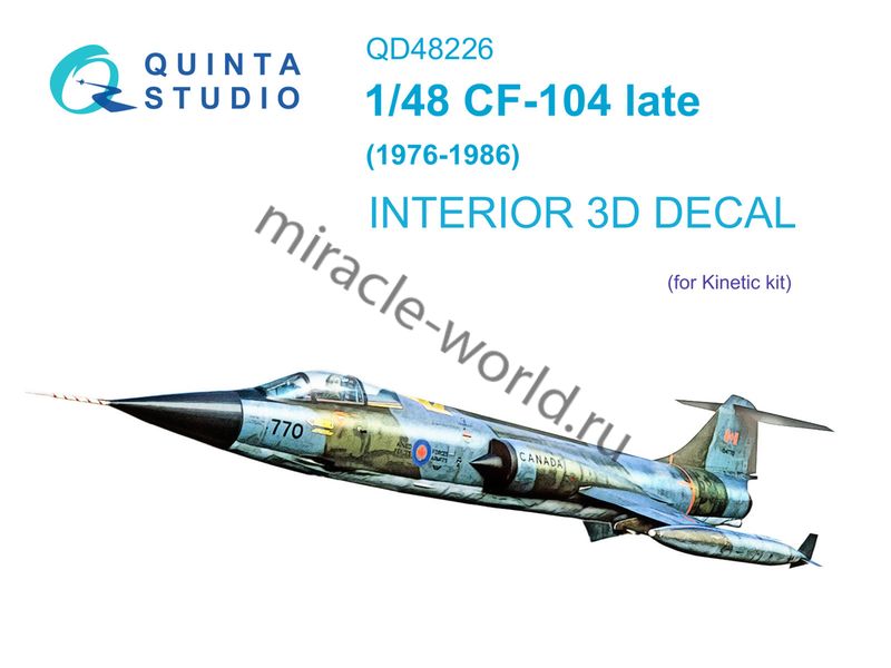 Quinta QD48226 3D Декаль интерьера кабины CF-104 "Starfighter" (late, для модели Kinetic) 1/48