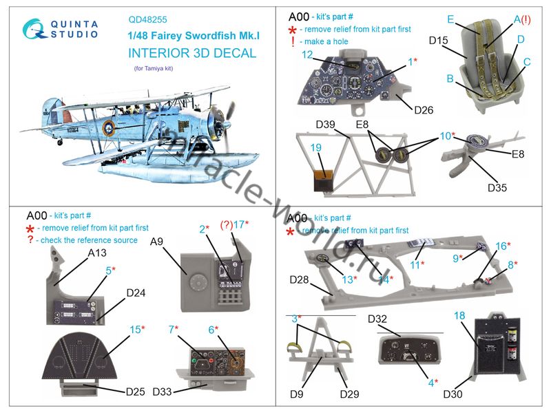 Quinta QD48255 3D Декаль интерьера кабины Swordfish Mk.I (для модели Tamiya) 1/48
