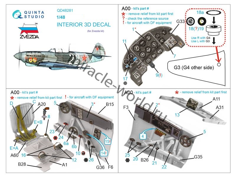 Quinta QD48281 3D Декаль интерьера кабины Самолет (Я) тип 9Д (для модели Звезда) 1/48