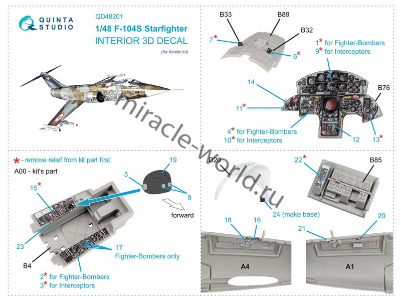 Quinta QD48201 3D Декаль интерьера кабины F-104S "Starfighter" (для модели Kinetic) 1/48