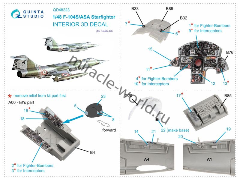 Quinta QD48223 3D Декаль интерьера кабины F-104S/ASA "Starfighter" (для модели Kinetic) 1/48