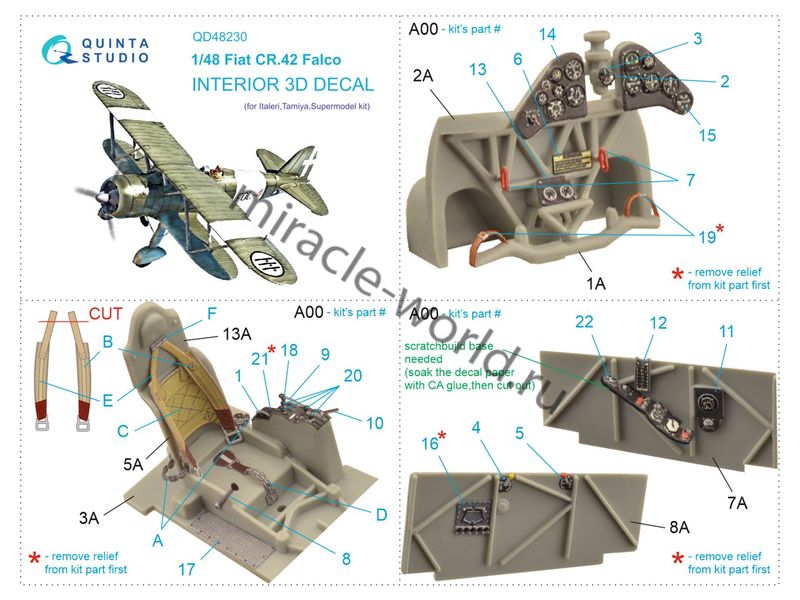Quinta QD48230 3D Декаль интерьера кабины Fiat CR.42 "Falco" (для модели Italeri) 1/48