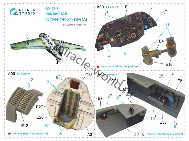 Quinta QD48241 3D Декаль интерьера кабины Me-163B (для модели GasPatch models) 1/48