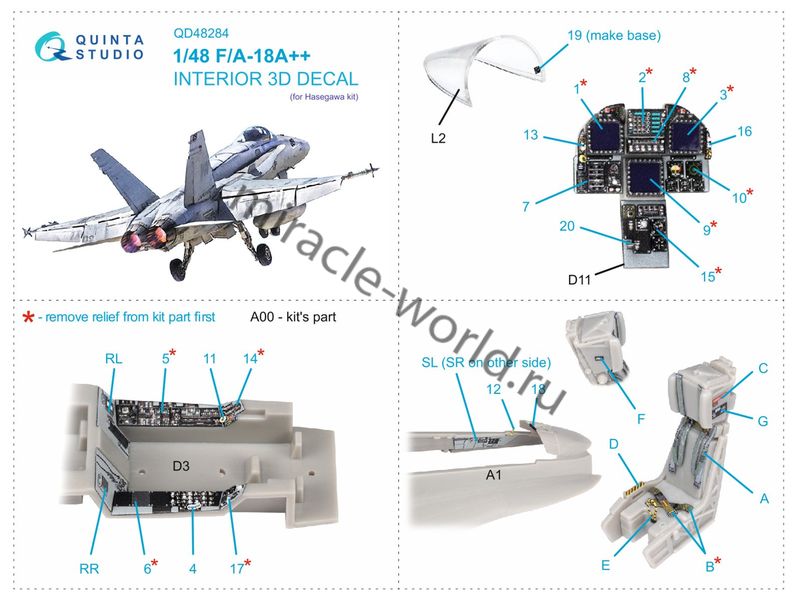 Quinta QD48284 3D Декаль интерьера кабины F/A-18A++ / F-18A++ (для модели Hasegawa) 1/48