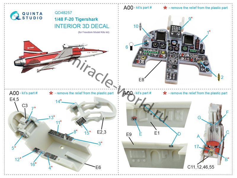 Quinta QD48257 3D Декаль интерьера кабины F-20 "Tigershark" / F-5G (для модели Freedom Model) 1/48