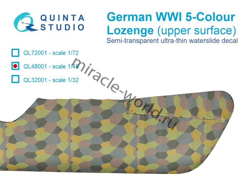 Quinta QL48001 Декаль германский WWI 5-цветный Лозенг (верхние поверхности) 1/48