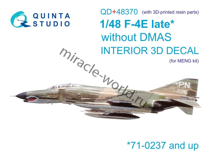Quinta QD48370+ 3D Декаль интерьера кабины F-4E "Phantom II" (late, без DMAS, Meng) с 3D дет. 1/48