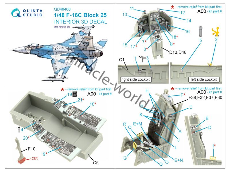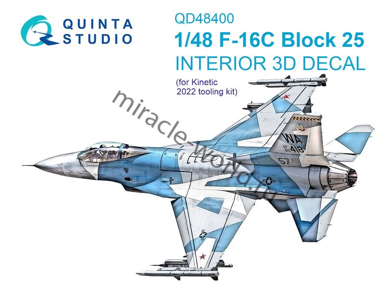 Quinta QD48400 3D Декаль интерьера кабины F-16C Block 25 (для модели Kinetic) 1/48