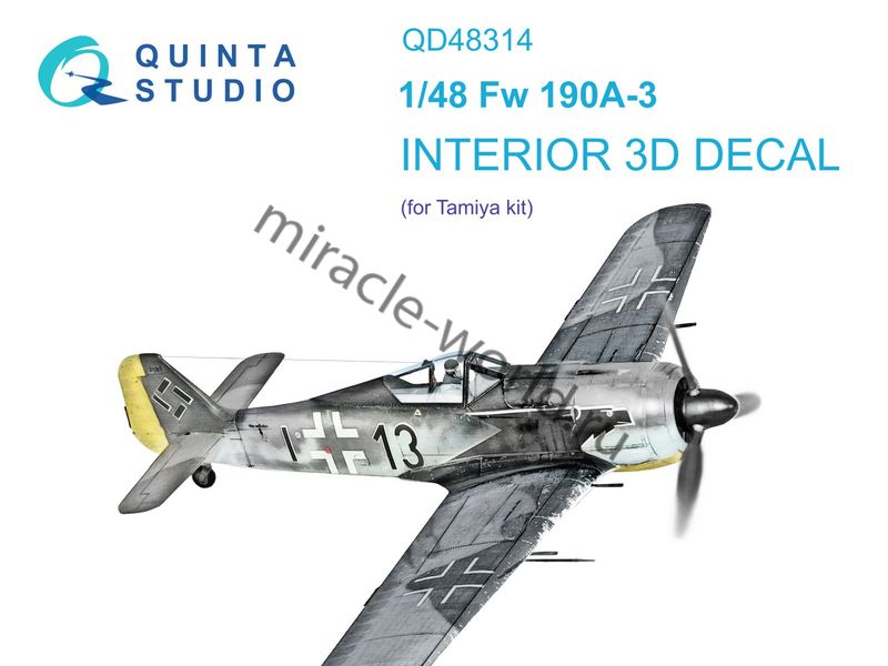 Quinta QD48314 3D Декаль интерьера кабины Fw-190A-3 (для модели Tamiya) 1/48