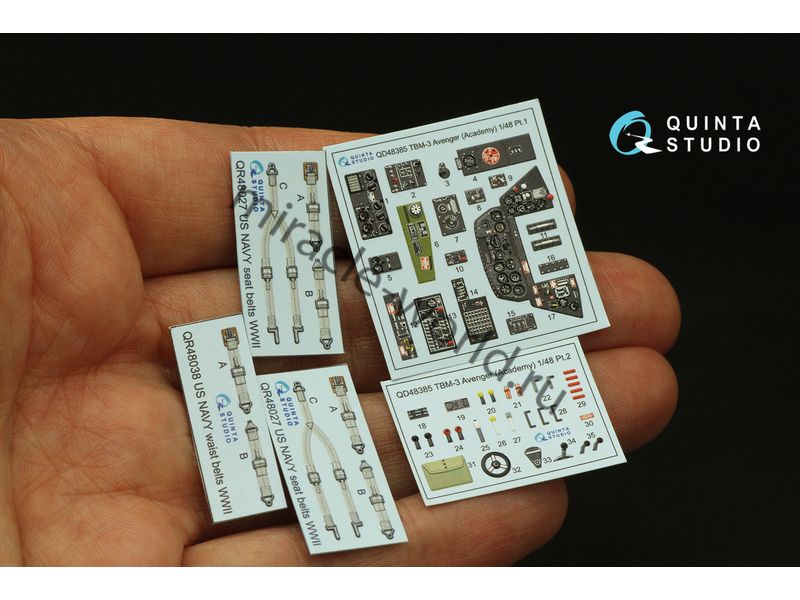 Quinta QD48385 3D Декаль интерьера кабины TBM-3 "Avenger" (для модели Academy) 1/48