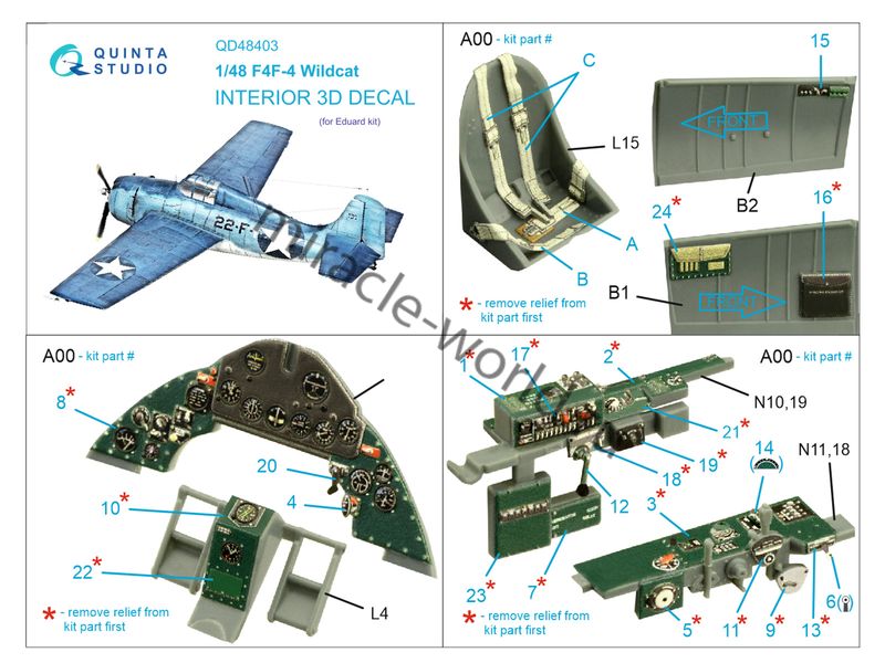 Quinta QD48403 3D Декаль интерьера кабины F4F-4 "Wildcat" (для модели Eduard) 1/48