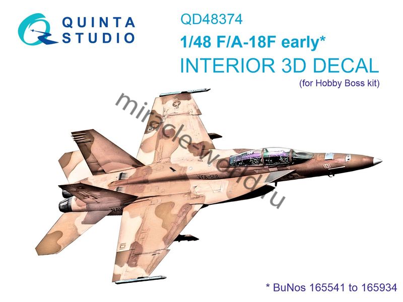 Quinta QD48374 3D Декаль интерьера кабины F/A-18F (early) / F-18F (для модели Hobby Boss) 1/48