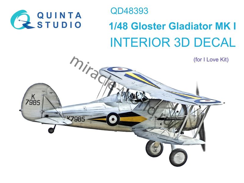 Quinta QD48393 3D Декаль интерьера кабины Gloster Gladiator Mk.I (для модели I Love Kit) 1/48
