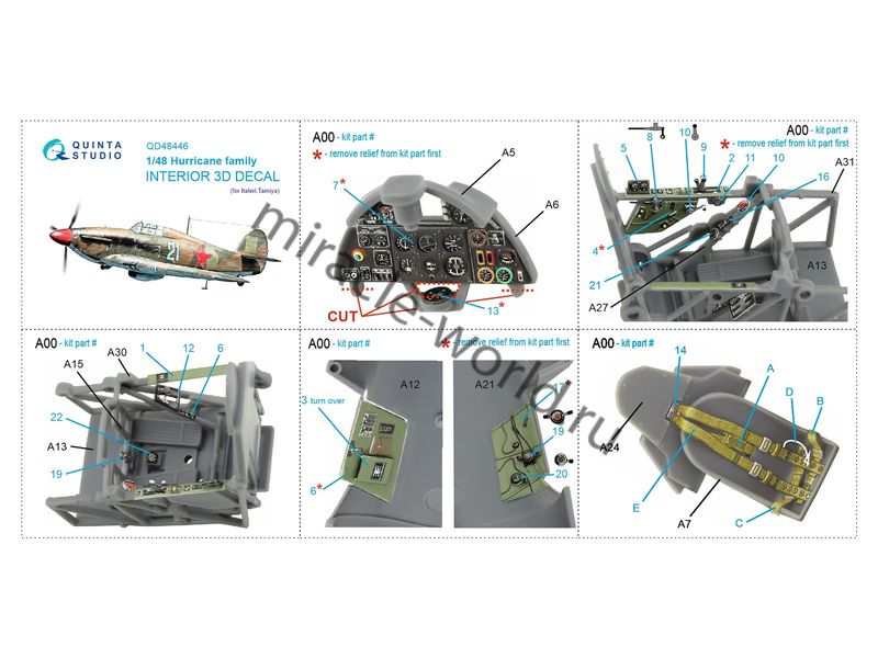 Quinta QD48446 3D Декаль интерьера кабины для семейства Hawker Hurricane (для Italeri/Tamiya) 1/48