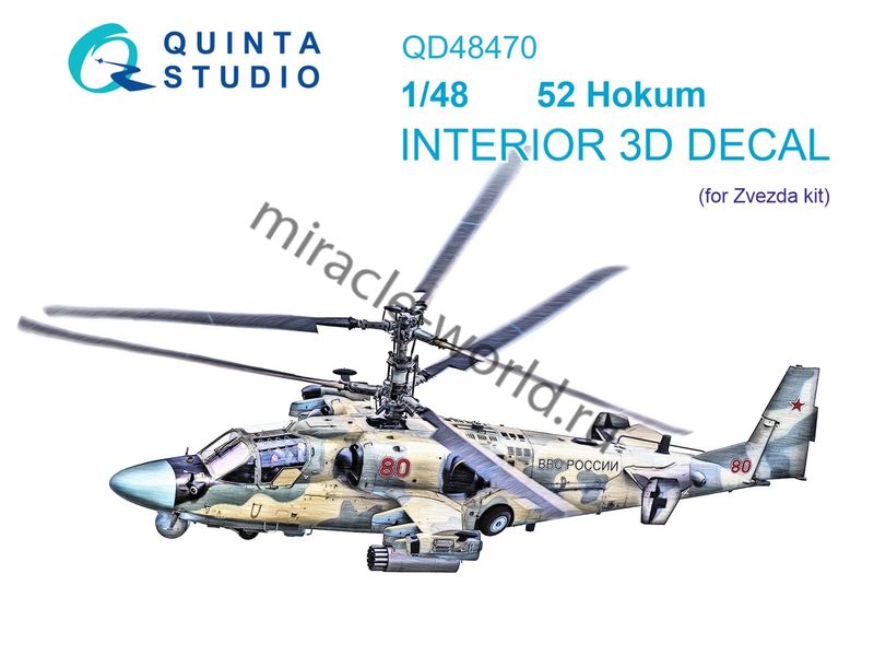 Quinta QD48470 3D Декаль интерьера кабины Вертолет (К) тип 52 (для модели Звезда) 1/48