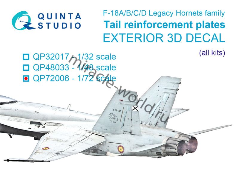 Quinta QP72006 3D Декаль усиливающие килевые накладки F/A-18A/B/C/D / F-18 (для всех моделей) 1/48