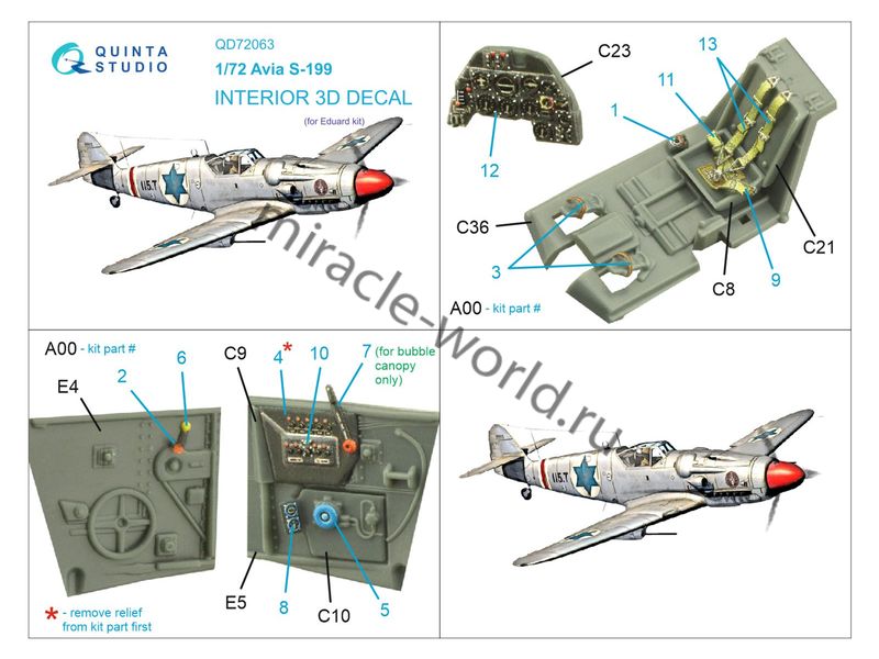 Quinta QD72063 3D Декаль интерьера кабины Avia S-199 (для модели Eduard) 1/72