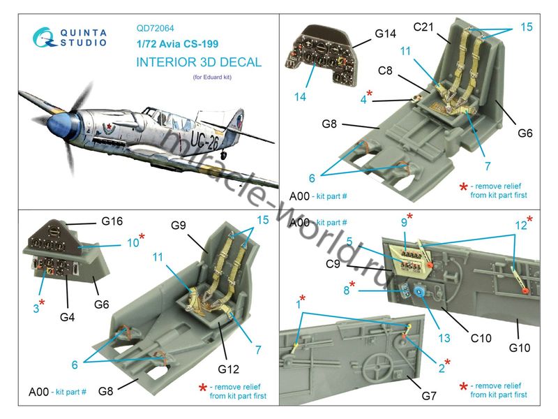 Quinta QD72064 3D Декаль интерьера кабины Avia CS-199 (для модели Eduard) 1/72