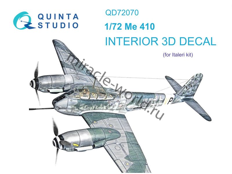 Quinta QD72070 3D Декаль интерьера кабины Me-410 "Hornisse" (для модели Italeri) 1/72