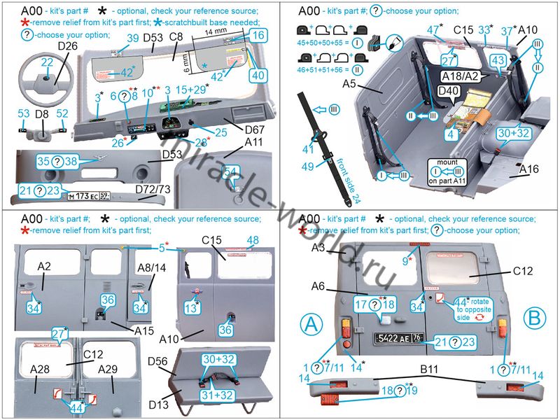 Quinta QD35045 3D Декаль интерьера кабины УАЗ-3909 "Буханка" (для модели Звезда) 1/35