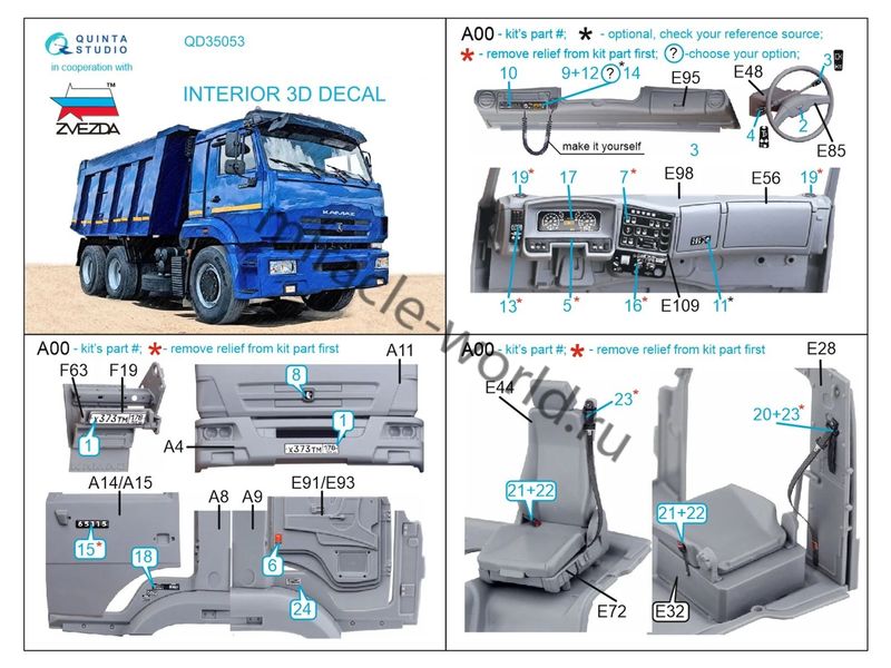 Quinta QD35053 3D Декаль интерьера кабины Автомобиль (К) тип К-65115 "Самосвал" (для Звезда) 1/35