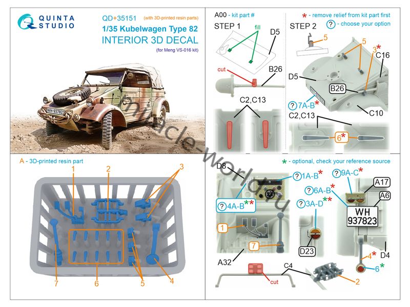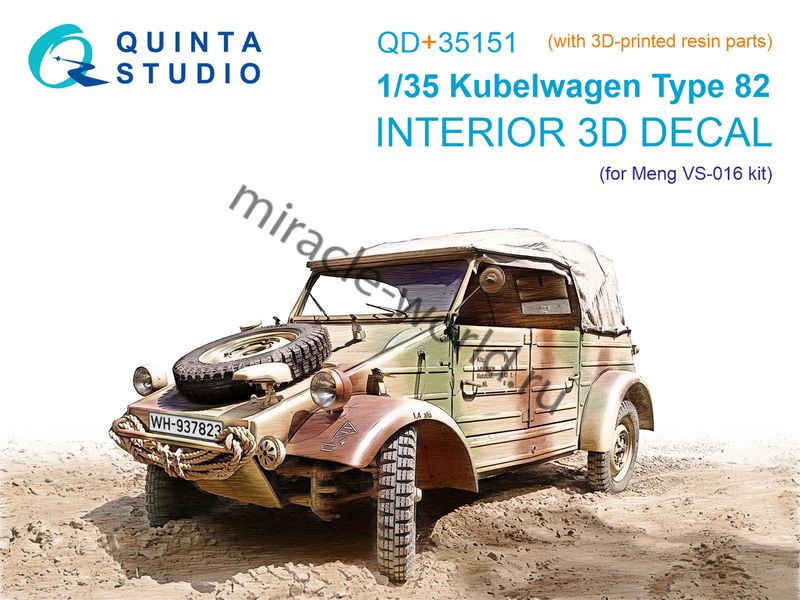 Quinta QD35151+ 3D Декаль интерьера для Kubelwagen Type 82 (для Meng, с 3D- деталями) 1/35