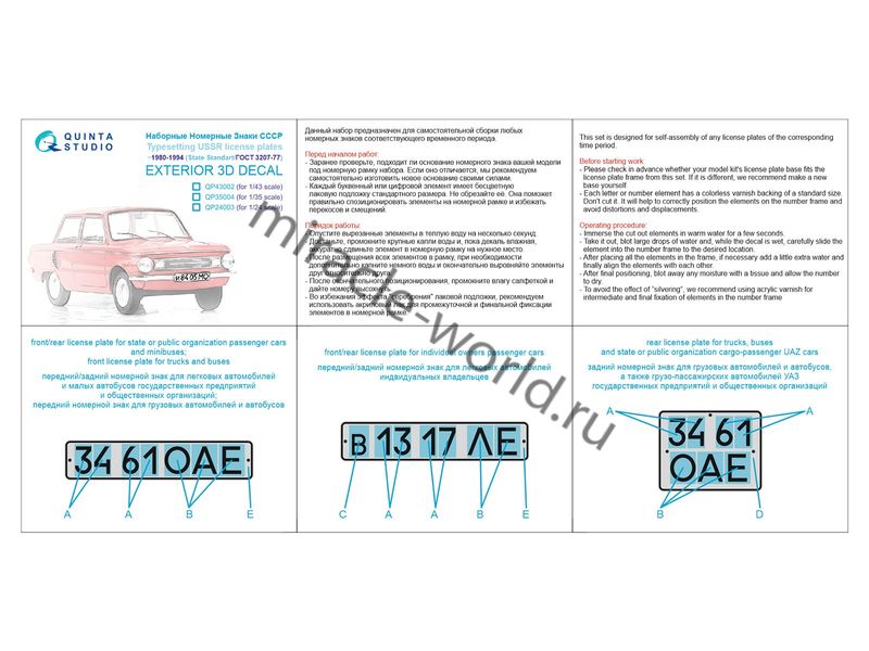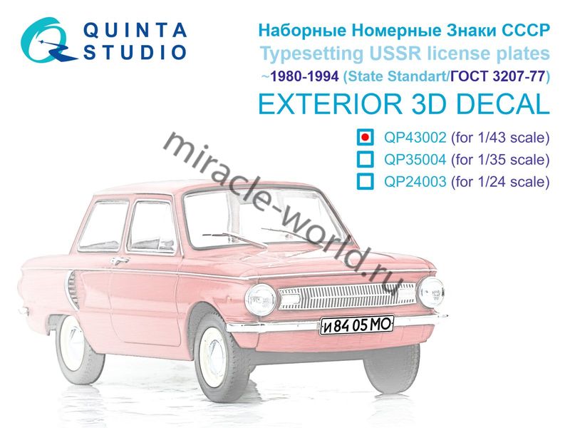 Quinta QP43002 3D Декаль наборные номерные знаки СССР 1980-1994г. (ГОСТ 3207-77) 1/43