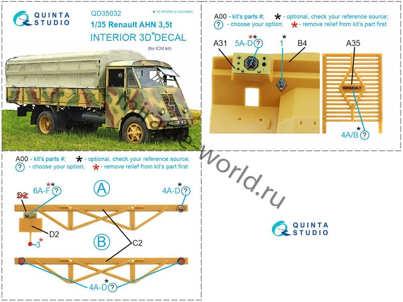Quinta QD35032 3D Декаль интерьера кабины Renault AHN 3.5t (для модели ICM) 1/35